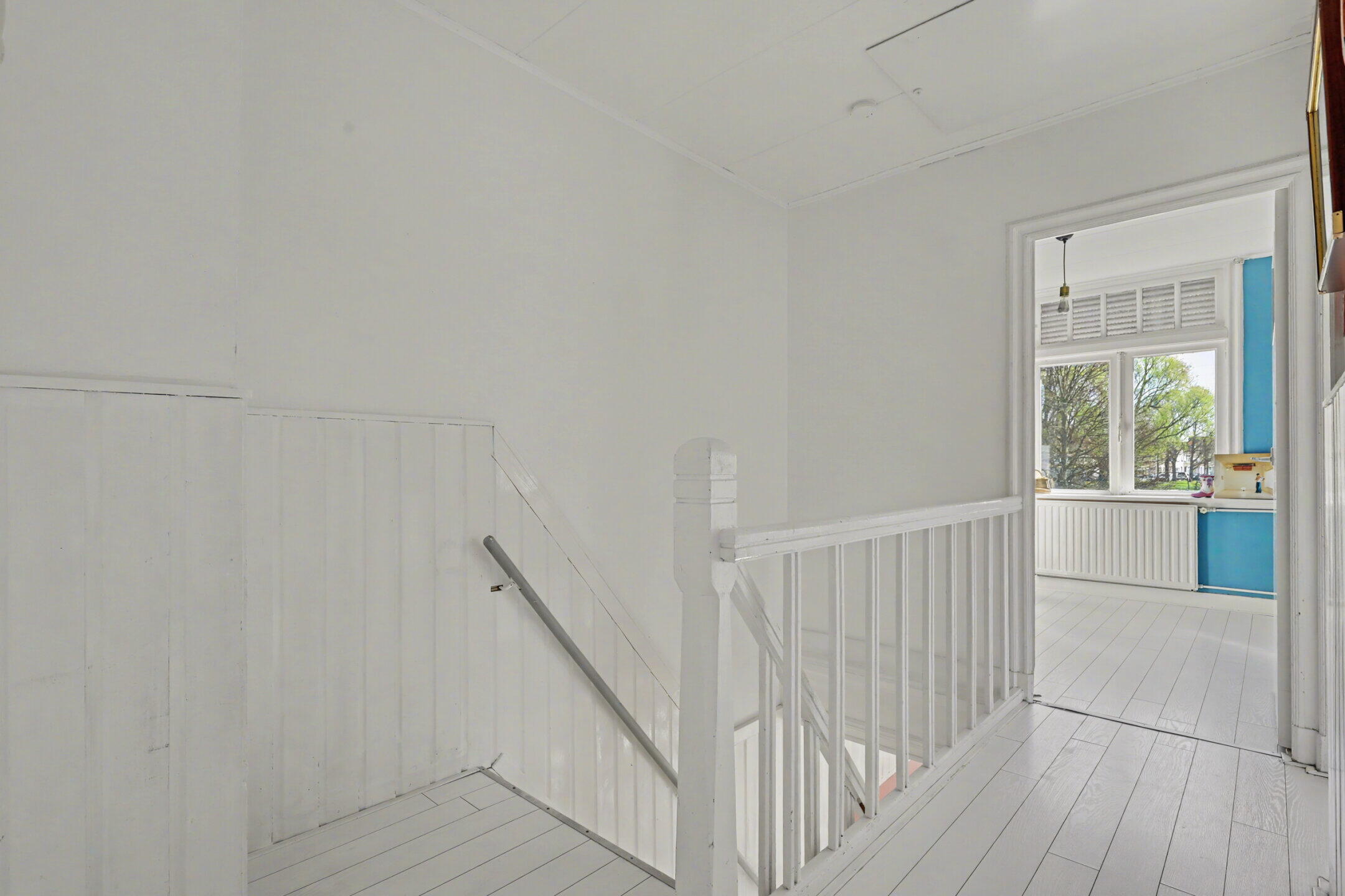 Eerste verdieping: overloop die toegang biedt naar maar liefst 4 slaapkamers, deels met vaste kastruimte en de voorslaapkamer met een frans balkon. Fraaie, nagenoeg nieuwe badkamer (2025) met een royale inloopdouche, groot wastafelmeubel en een tweede toilet. De badkamer is echt een plaatje.